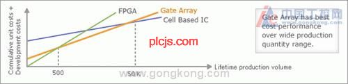 5、 安全性:当使用FPGA时,顾客的专用电路数据存储在ROM中,由于FPGA是一个通用产品,通过监控启动时ROM 和 FPGA之间的位流,可以截取和复制电路数据。而如果使用门阵列,顾客的专用电路设计在半定制IC上硬连线实现,从而使其不可能被复制。