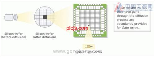 2、 交货周期短:在生成 LSI时,形成元素(如硅晶片上的晶体管)的扩散过程需要很长的时间。通过门阵列,制造商可以提供叫做主晶片的晶片,该晶片上的扩散过程已经完成。在确定要实现的电路之后,将没有相互连线以及电路独立的基本单元结合起来,实现您所需要的数字电路,从而大大减少芯片生产时间,提高交货速度。