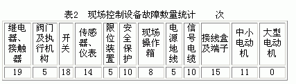 在整个过程控制系统中最容易发生故障地点在现场,表2列出了现场中最容易出故障的几个方面。